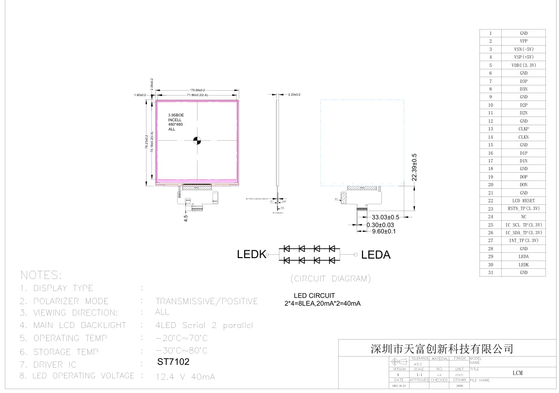 3,95-palcový malý IPS modul dotykovej obrazovky pre inteligentnú domácnosť podporuje duálne systémové rozhrania MIPI/IIC a ST7102I driver IC (30 ms rýchla odozva). Podsvietenie LED 4S2P (nízky prúd 40 mA) vyvažuje jas a energetickú účinnosť. 2,2 mm tenký modul uľahčuje kompaktnú inštaláciu.